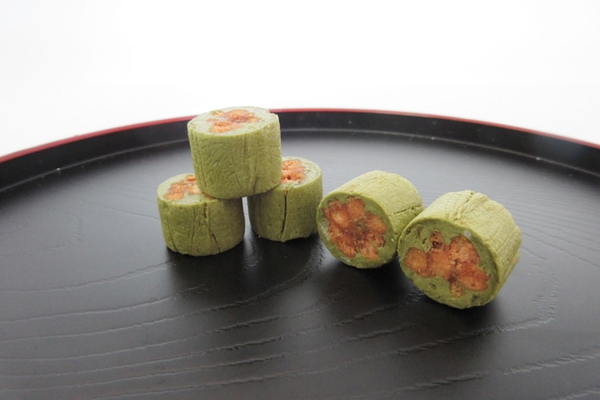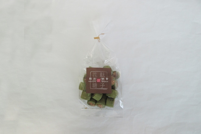 粒状のかりんとうを抹茶を練り込んだ飴で包んだもの。生地の香ばしさと抹茶飴のさわやかな風味が絶妙です。