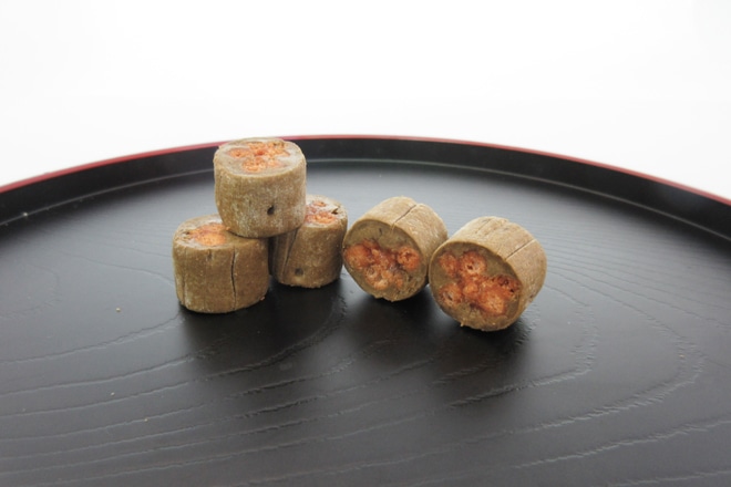 粒状のかりんとうをきな粉を練り込んだ飴で包んだもの。生地の香ばしさときな粉飴のまろやかな風味が絶妙です。