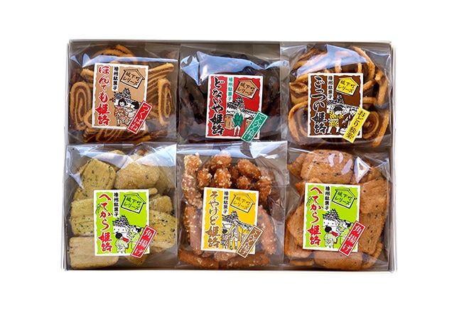 黒蜜65g×1袋、アーモンド65g×1袋、ごま角65g×1袋、平うず65g×1袋、ほうれんそう角65g×1袋、うず巻65g×1袋 |